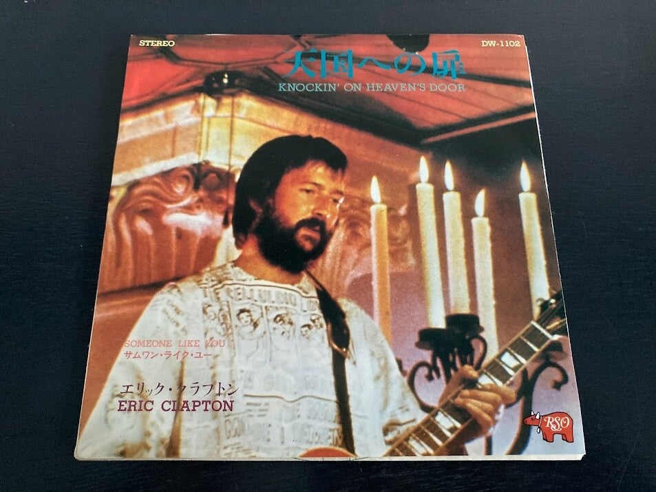 De single “Knockin’ On Heaven’s Door / Someone Like You” van Eric Clapton uit Japan. Het gaat hier om een re-release van de Japanse single met originele insert.
