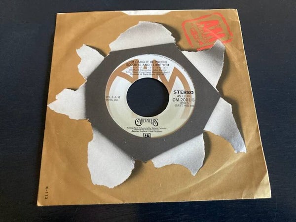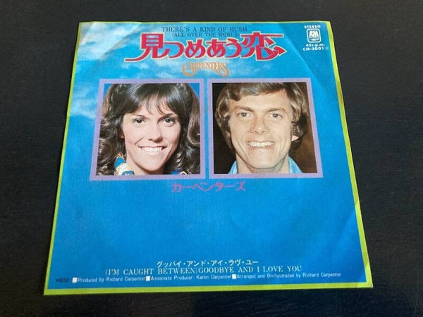 De single “There’s A Kind Of Hush / (I’m Caught Between) Goodbye And I Love You” van The Carpenters uit Japan, uitgebracht in 1976. Het gaat hier om de originele (eerste) release van de Japanse single met originele insert.