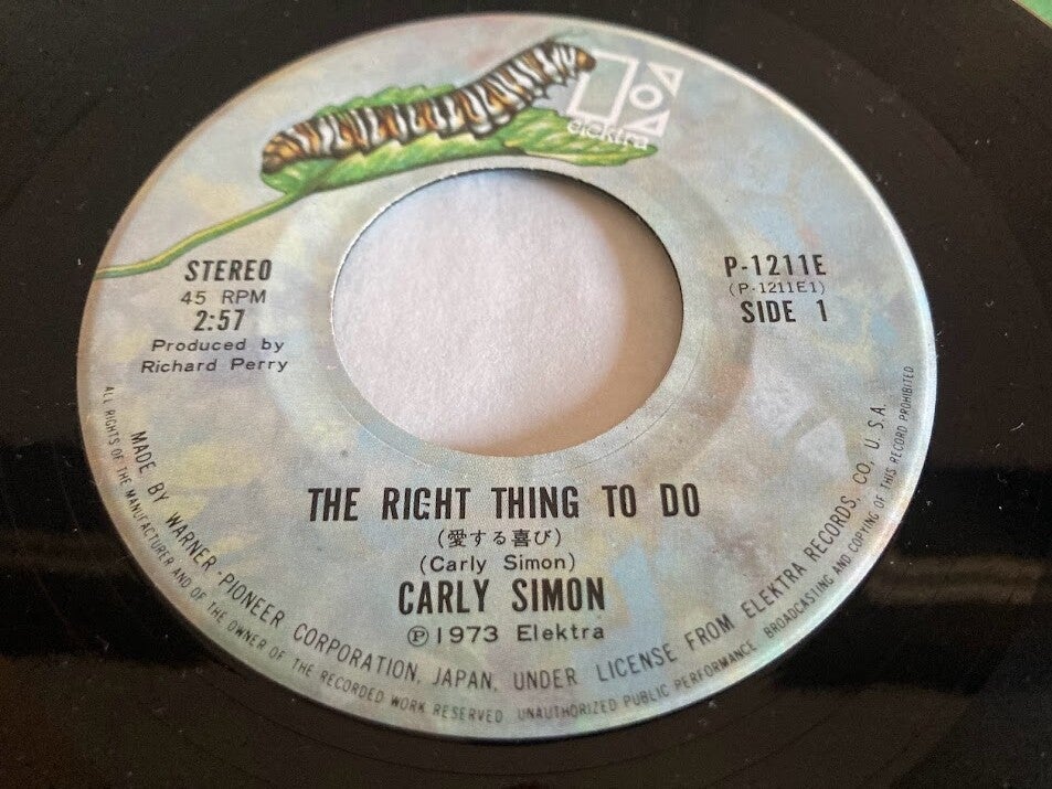 Carly Simon “The Right Thing To Do” 7” single uit Japan