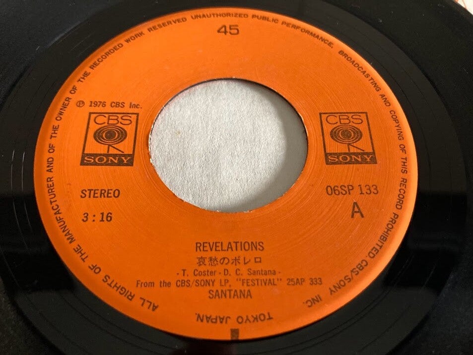 De single “Revelations / Reach Up” van Santana uit Japan, uitgebracht in 1977. Het gaat hier om de originele (eerste) release van de Japanse single met originele insert.