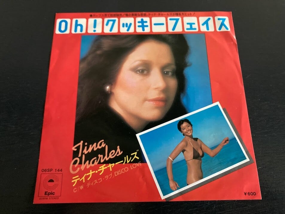 De single “Cookie Face / Disco Love” van Tina Charles uit Japan, uitgebracht in 1977. Het gaat hier om de originele (eerste) release van de Japanse single met originele insert.