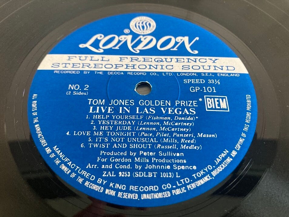 Tom Jones "Live In Las Vegas" gatefold uit Japan