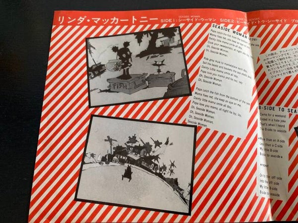 De single “Seaside Woman / B-side to Seaside” van Linda McCartney uit Japan. Het gaat hier om de originele (eerste) release van de Japanse single met originele insert van vier pagina's.