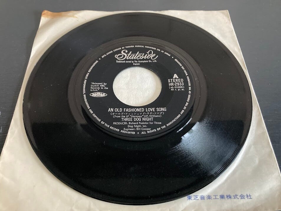 De single “An Old Fashioned Love Song / Jam” van Three Dog Night uit Japan. Het gaat hier om de originele (eerste) release van de Japanse single met originele insert van vier pagina's, uitgebracht in 1971.