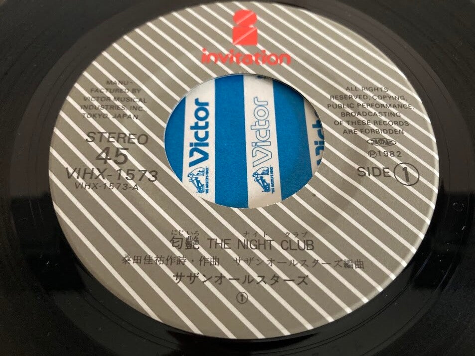 De single “Houyou The Night Club / Hashire! Tokyo Town” van Southern All Stars uit Japan. Het gaat hier om de originele (eerste) release van de Japanse single met originele insert, uitgebracht in 1982.
