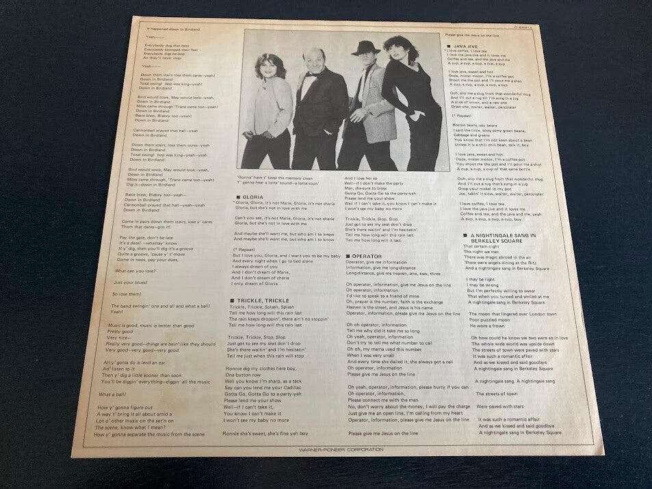In de hoes zit een insert van vier pagina’s met info over Manhattan Transfer in het japans plus alle songteksten in het engels. Deze insert is verkleurd aan de voorkant maar ziet er verder nog zeer goed uit.