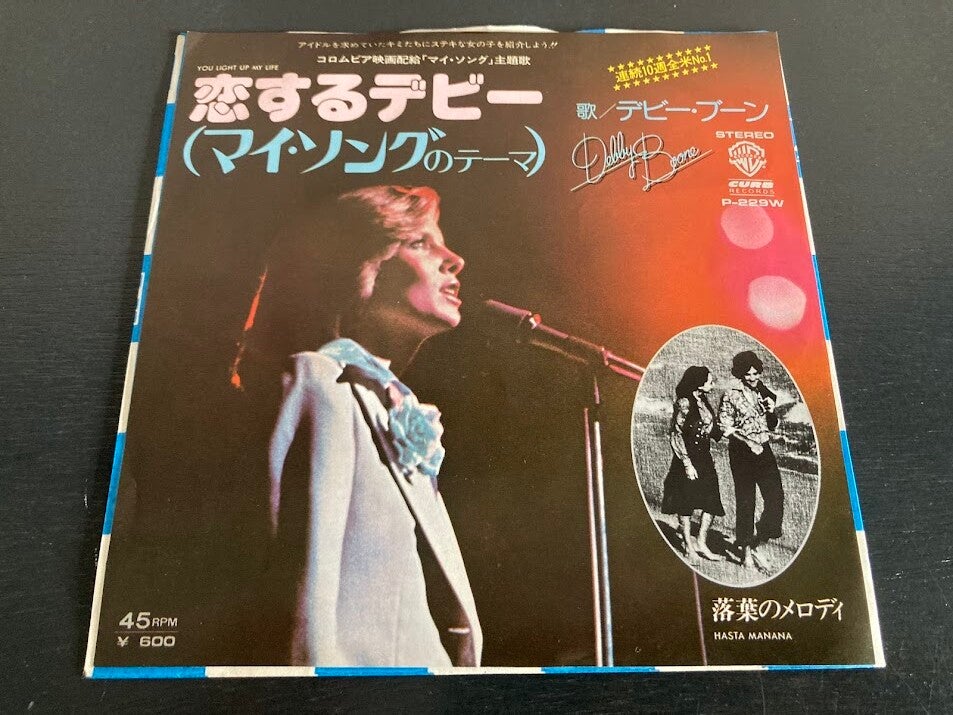 De single “You Light Up My Life / Hasta Manana” van Debby Boone uit Japan. Het gaat hier om de originele (eerste) release van de Japanse single met originele insert, uitgebracht in 1977.
