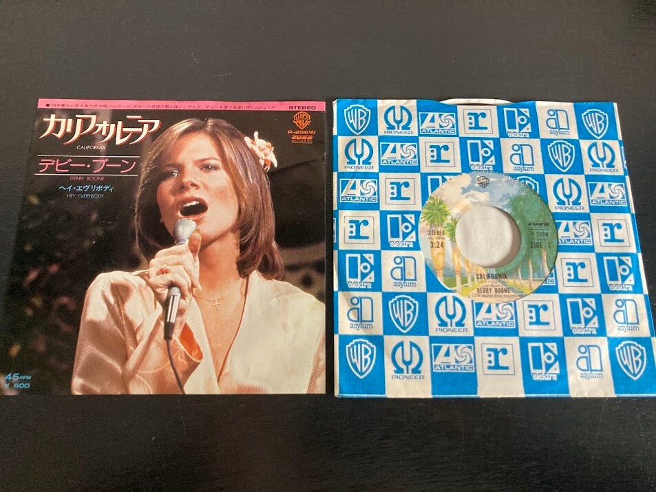De single “California / Hey Everybody” van Debby Boone uit Japan. Het gaat hier om de originele (eerste) release van de Japanse single met originele insert, uitgebracht in 1978.
