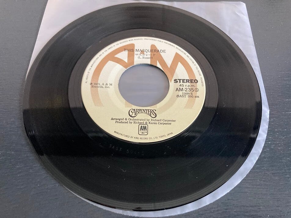 De single “Please Mr. Postman / This Masquerade” van The Carpenters uit Japan. Het gaat hier om de originele (eerste) release van de Japanse single met fotohoes, uitgebracht in 1974.