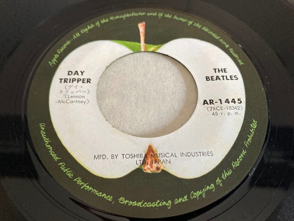 De single “We Can Work It Out / Day Tripper” van The Beatles uit Japan. Het gaat hier om een re-release van de Japanse single met originele insert van vier pagina's, uitgebracht in 1973.
