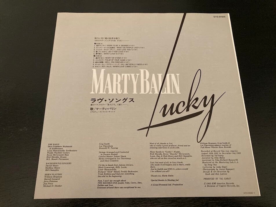 Het album “Lucky” van Marty Balin uit Japan met OBI en insert, uitgebracht in 1983.