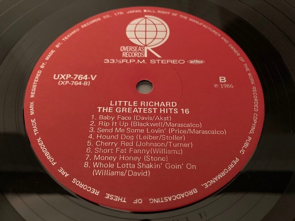 Het album “Greatest Hits 16” van Little Richard uit Japan met OBI en insert.
