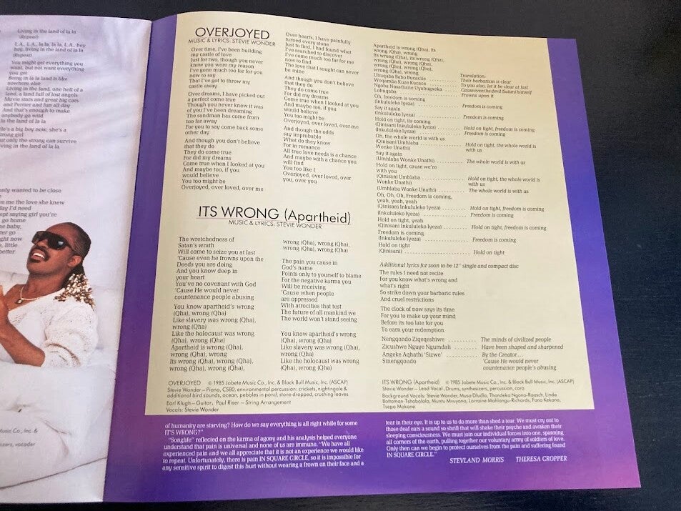 Een insert van vier pagina’s met info over Stevie Wonder in het japans plus alle songteksten in het japans.
