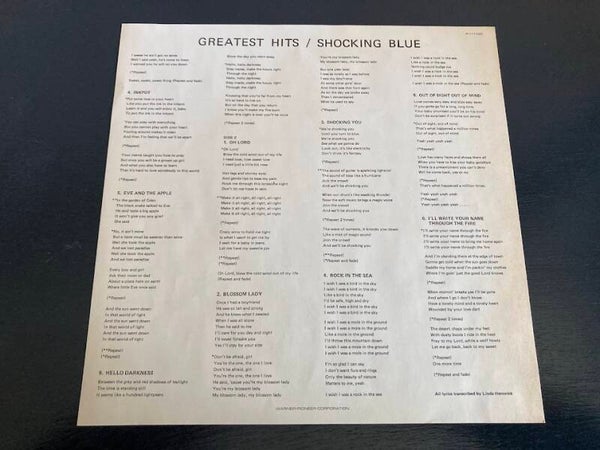 In de hoes zit een insert van één pagina met info over Shocking Blue in het japans plus alle songteksten in het engels. Deze insert ziet er nog zeer goed uit.
