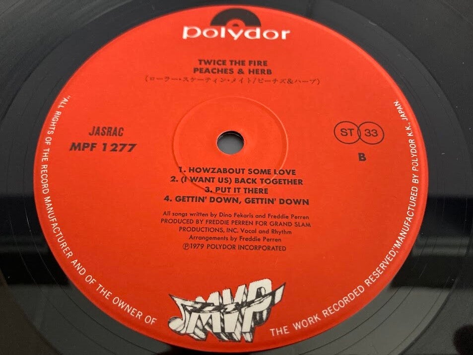 Het album “Twice The Fire” van Peaches & Herb uit Japan met OBI, originele innersleeve en insert, uitgebracht in 1979.