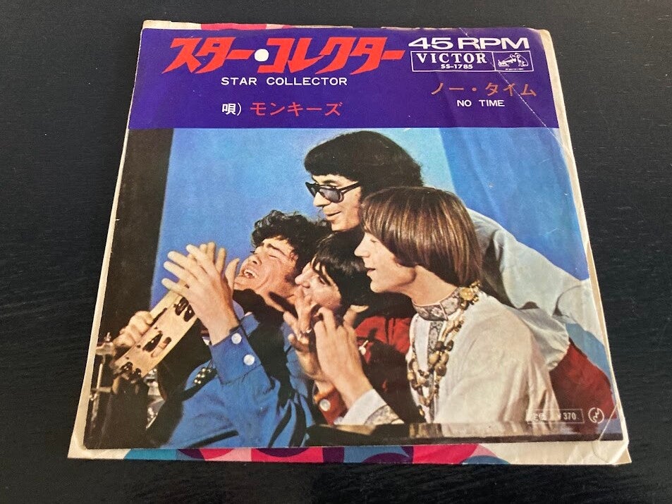 De single “Star Collector / No Time” van The Monkees uit Japan. Het gaat hier om de originele (eerste) release van de Japanse single met originele insert, uitgebracht in 1967.