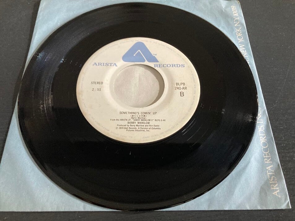 De single “Mandy / Something's Comin' Up” van Barry Manilow uit Japan. Het gaat hier om de originele (eerste) release van de Japanse single met originele insert, uitgebracht in 1974.