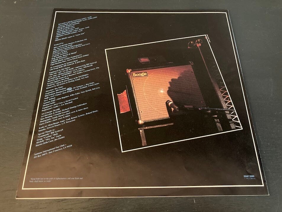 Het album “Shango” van Santana uit Japan met OBI, antwoordkaart en insert, uitgebracht in 1982.