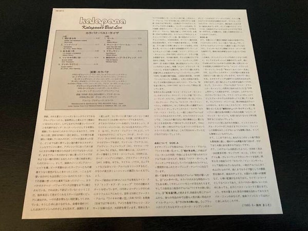 Het album “Kalapana's Best Live” van Kalapana uit Japan met OBI en insert, uitgebracht in 1980.