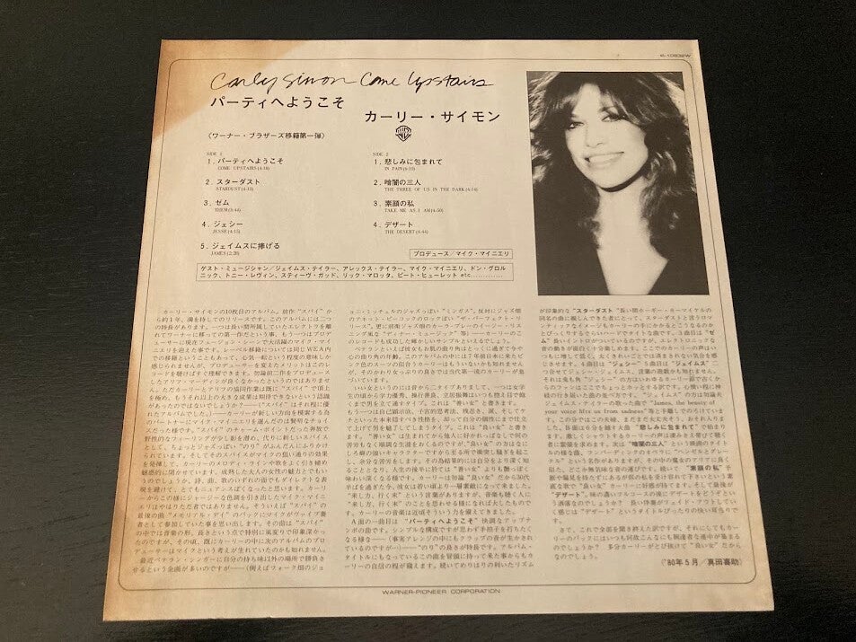 Het album “Come Upstairs” van Carly Simon uit Japan met OBI en 2 inserts, uitgebracht in 1980.