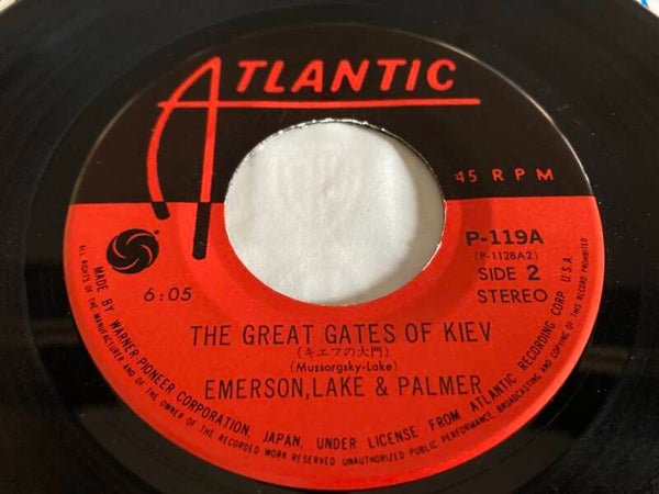 De single “Nutrocker / Great Gates Of Kiev” van Emerson, Lake & Palmer uit Japan. Het gaat hier om de originele (eerste) release van de Japanse single met originele insert.