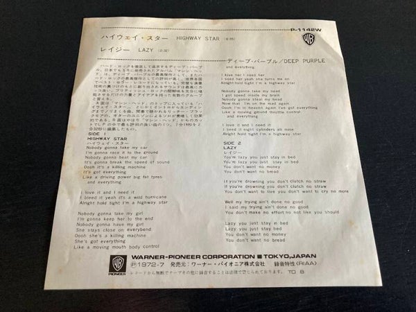 De single “Highway Star / Lazy” van Deep Purple uit Japan. Het gaat hier om de originele (eerste) release van de Japanse single met originele insert, uitgebracht in 1972.