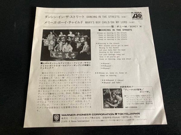 De single “Dancing In The Streets / Mary's Boy Child” van Boney M uit Japan. Het gaat hier om de originele (eerste) release van de Japanse single met originele insert, uitgebracht in 1979.