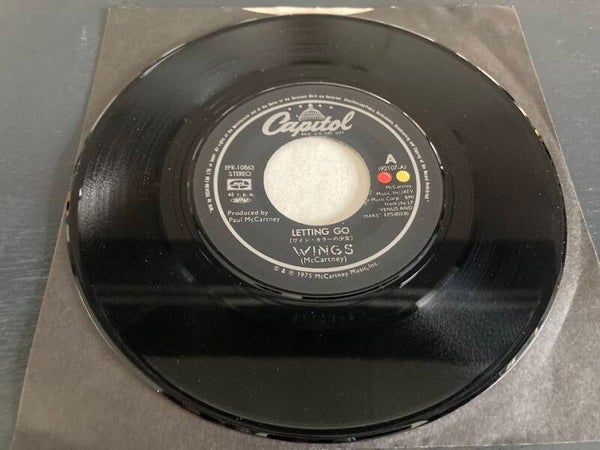 De single “Letting Go / You Gave Me The Answer” van Wings uit Japan. Het gaat hier om de originele (eerste) release van de Japanse single met originele insert, uitgebracht in 1975.