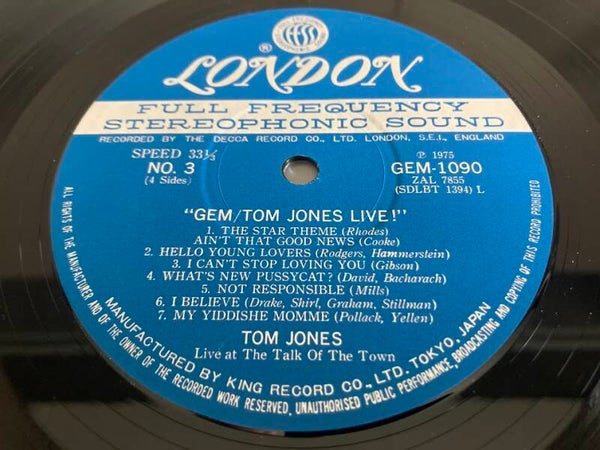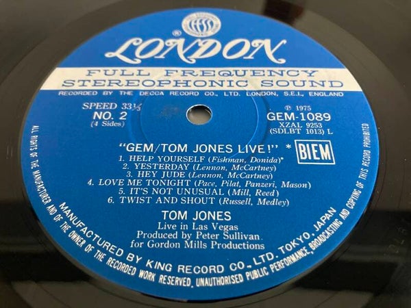 Het album “Tom Jones Live!” van Tom Jones uit Japan met OBI, uitgebracht in 1975.