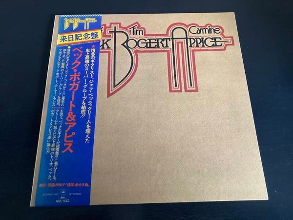 Het album “Beck, Bogart & Appice” van Jeff Beck, Tim Bogart & Carmen Appice uit Japan met OBI en insert, uitgebracht in 1973.