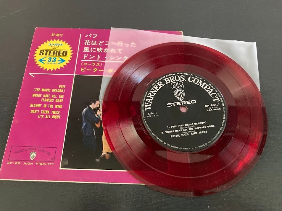Peter, Paul & Mary "Puff" 7" ROOD vinyl EP uit Japan