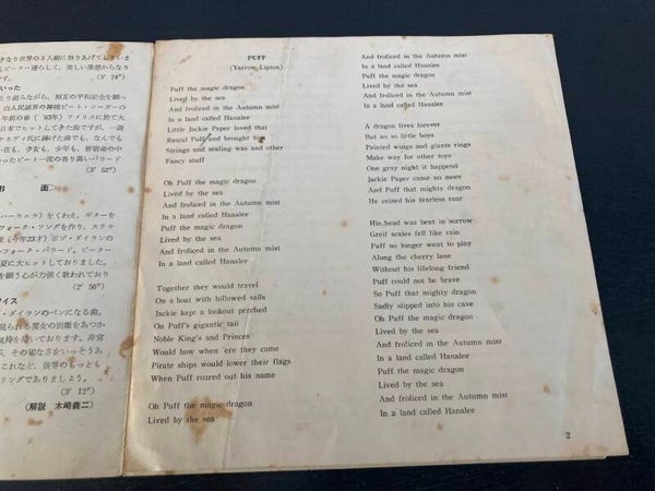 De EP “Puff” van Peter, Paul & Mary uit Japan. Het gaat hier om de originele (eerste) release van de Japanse EP met fotohoes en insert.