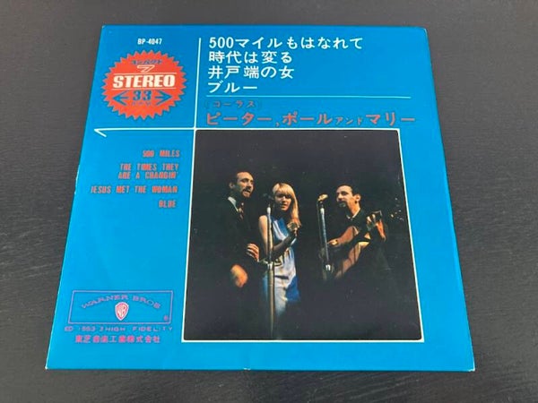 De EP “500 Miles” van Peter, Paul & Mary uit Japan. Het gaat hier om de originele (eerste) release van de Japanse EP met fotohoes en insert, uitgebracht in 1965.