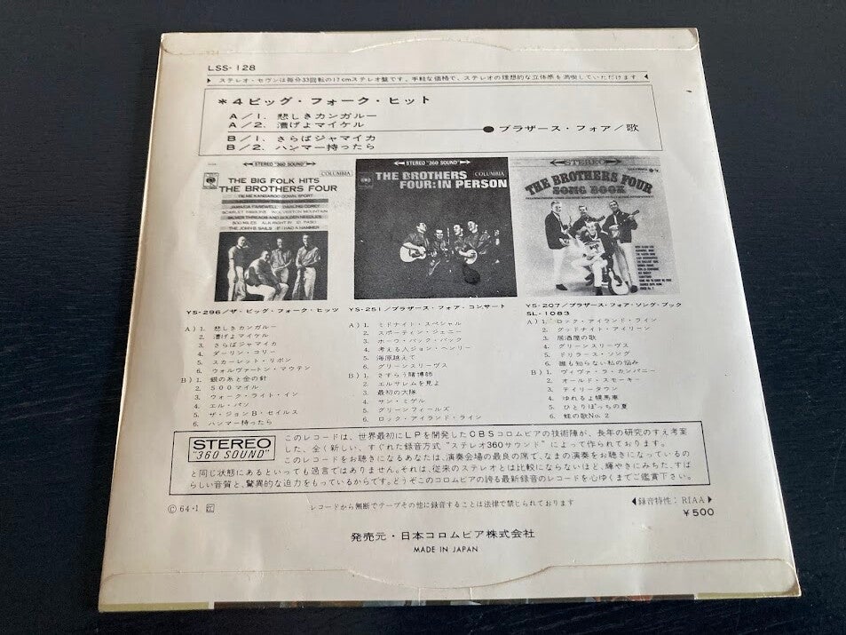 De EP “Four Big Folk Hits” van The Brothers Four uit Japan. Het gaat hier om de originele (eerste) release van de Japanse EP met fotohoes en insert, uitgebracht in 1964.