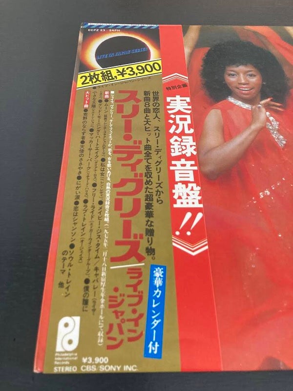 Het album “Live In Japan” van Three Degrees uit Japan met OBI, kalender en insert, uitgebracht in 1975.