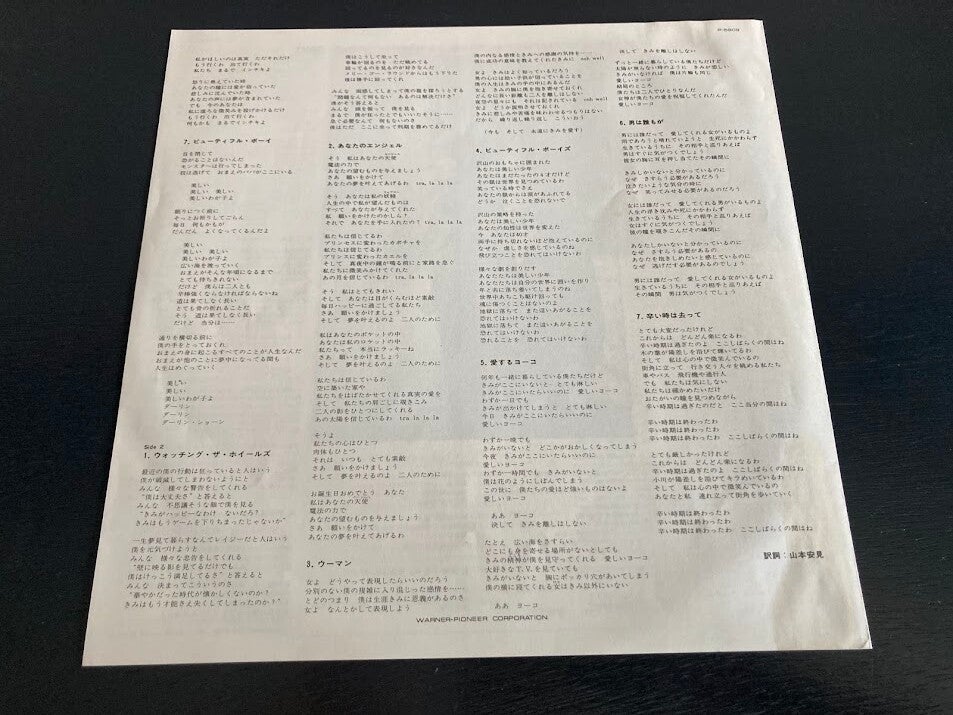 In de hoes zit een insert van vier pagina’s met info over John Lennon en Yoko Ono in het japans plus alle songteksten in het japans. Deze insert ziet er nog zeer goed uit.