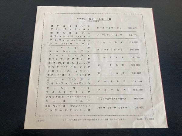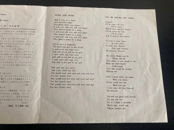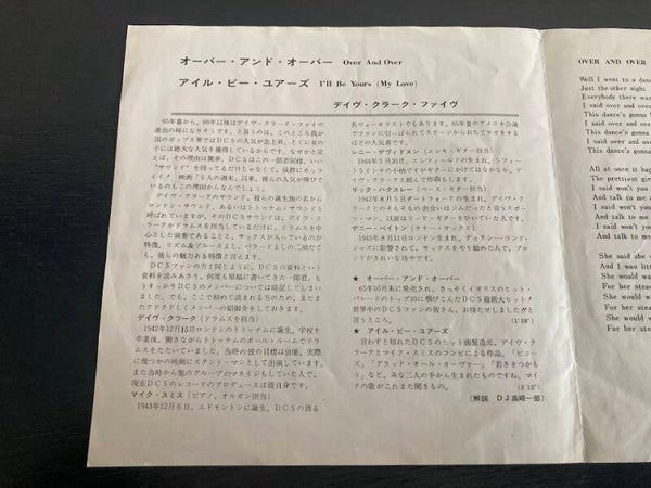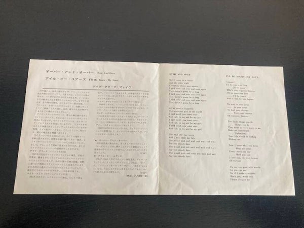 De single “Over And Over / I'll Be Yours” van Dave Clark Five uit Japan. Het gaat hier om de originele (eerste) release van de Japanse single met originele insert van vier pagina's, uitgebracht in 1965.