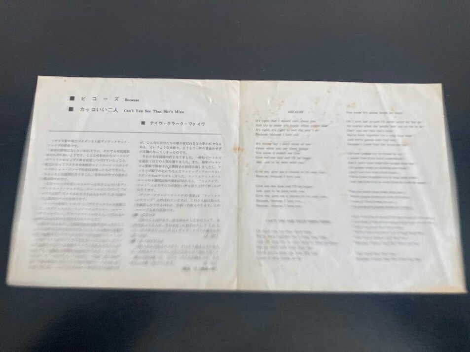 De single “Because / Can't You See That She's Mine” van Dave Clark Five uit Japan. Het gaat hier om de originele (eerste) release van de Japanse single met originele insert van vier pagina's, uitgebracht in 1964.