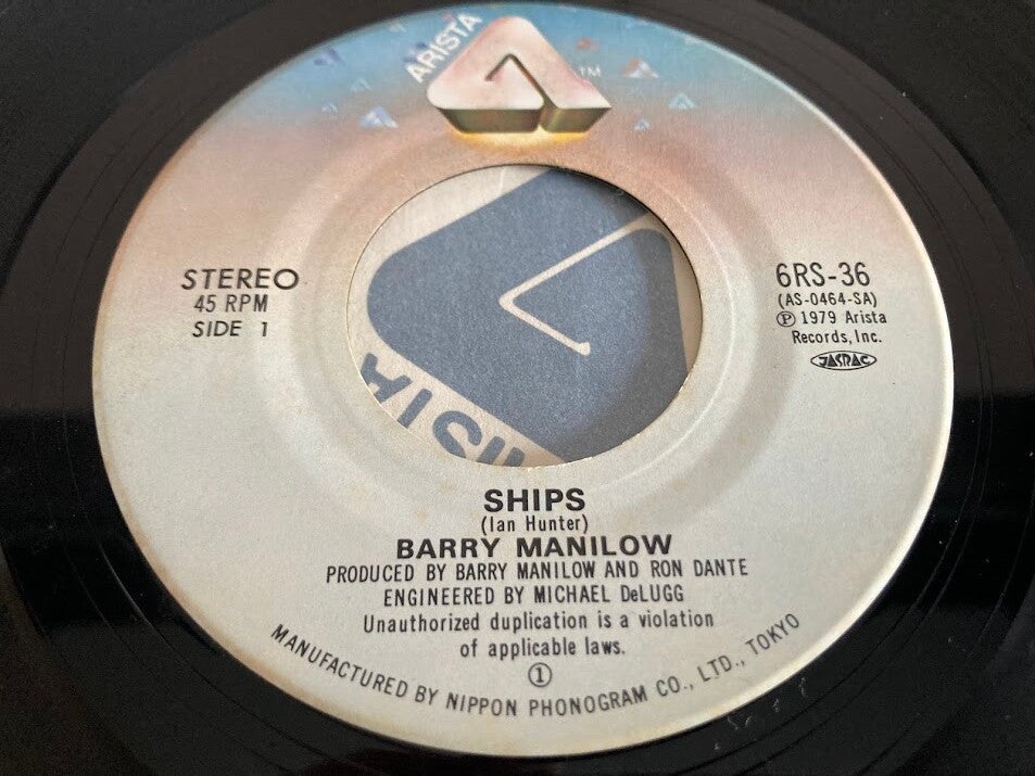 De single “Ships / They Gave In To The Blues” van Barry Manilow uit Japan. Het gaat hier om de originele (eerste) release van de Japanse single met originele insert, uitgebracht in 1979.