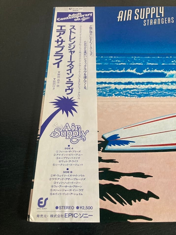 Het album “Strangers In Love” van Air Supply uit Japan met OBI en insert, uitgebracht in 1976.