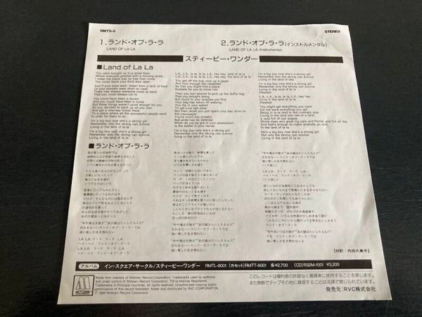 De single “Land Of La La / Land Of La La (instrumental)” van Stevie Wonder uit Japan. Het gaat hier om de originele (eerste) release van de Japanse single met originele insert, uitgebracht in 1986.