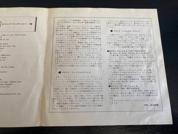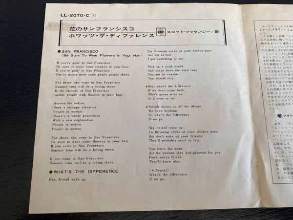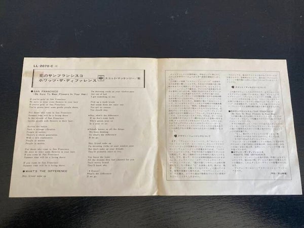 De single “San Francisco / What's The Difference” van Scott McKenzie uit Japan. Het gaat hier om de originele (eerste) release van de Japanse single met originele insert van vier pagina's, uitgebracht in 1967.