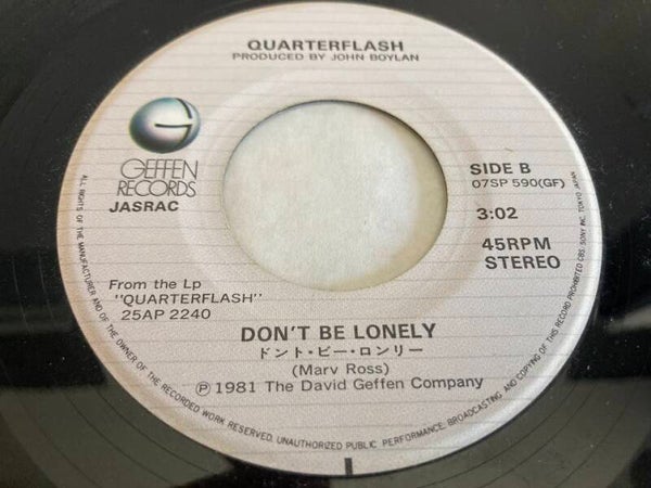 De single “Harden My Heart / Don't Be Lonely” van Quarterflash uit Japan. Het gaat hier om de originele (eerste) release van de Japanse single met originele insert, uitgebracht in 1981.