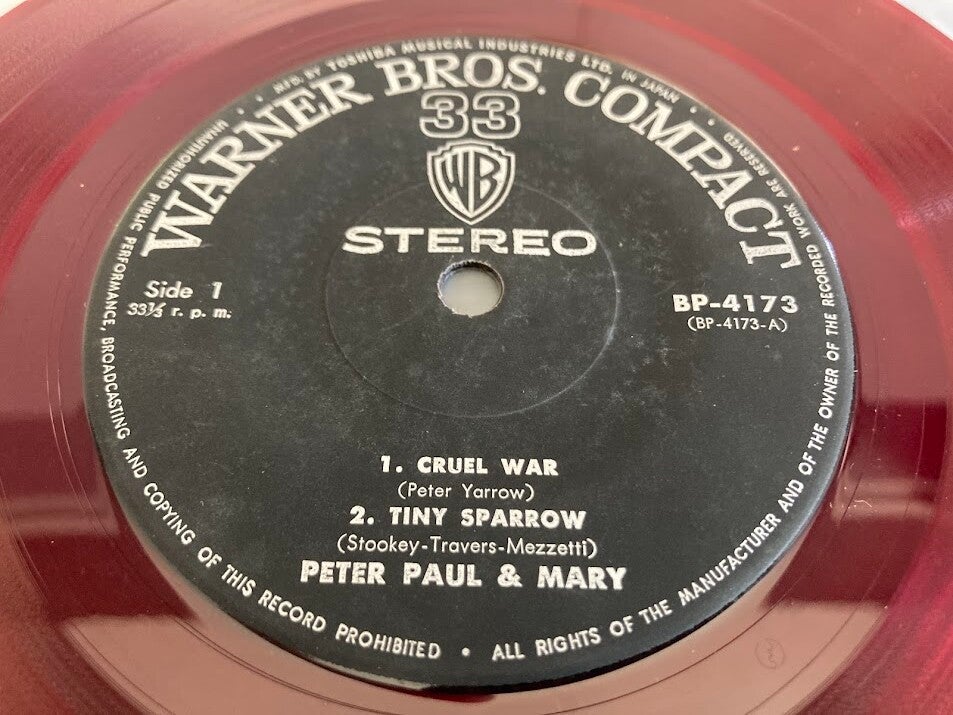 Peter, Paul & Mary "Cruel War" 7" ROOD vinyl EP uit Japan