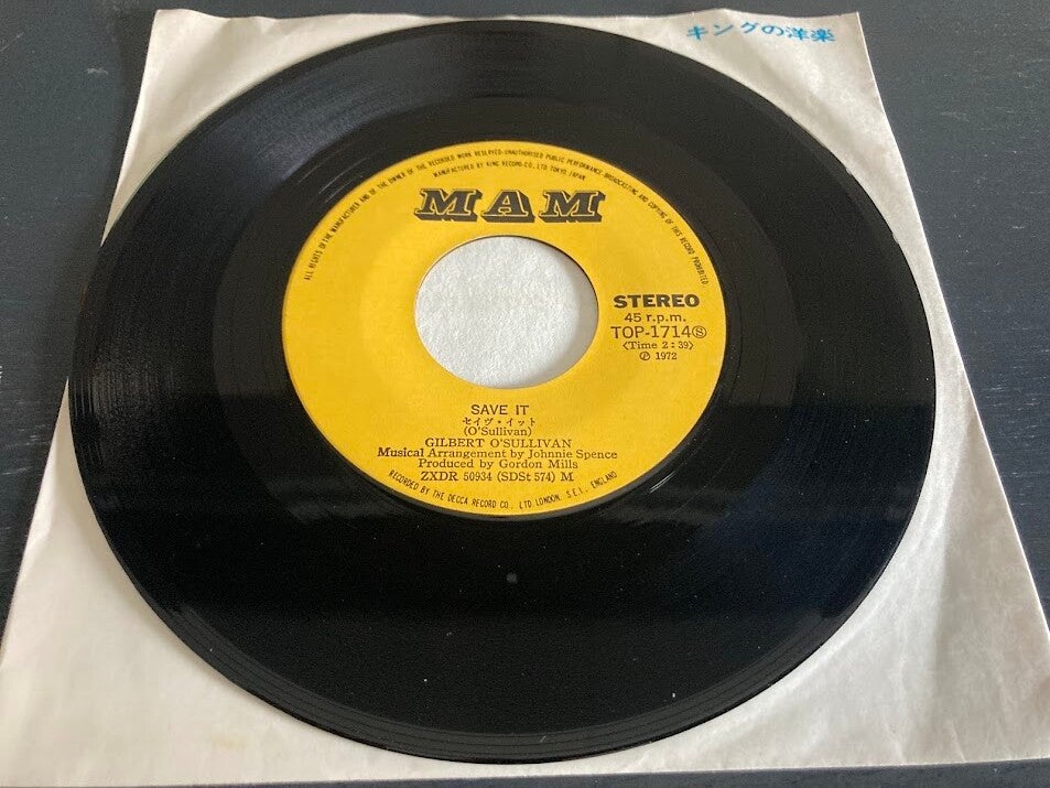 De single “Alone Again / Save It” van Gilbert O'Sullivan uit Japan. Het gaat hier om de originele (eerste) release van de Japanse single met originele insert, uitgebracht in 1972.