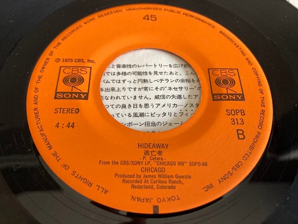 De single “Old Days / Hideaway” van Chicago uit Japan. Het gaat hier om de originele (eerste) release van de Japanse single met originele insert, uitgebracht in 1975.