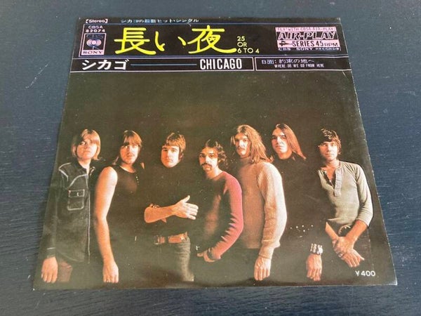 De single “25 or 6 To 4 / Where Do We Go From Here” van Chicago uit Japan. Het gaat hier om de originele (eerste) release van de Japanse single met originele insert, uitgebracht in 1970.