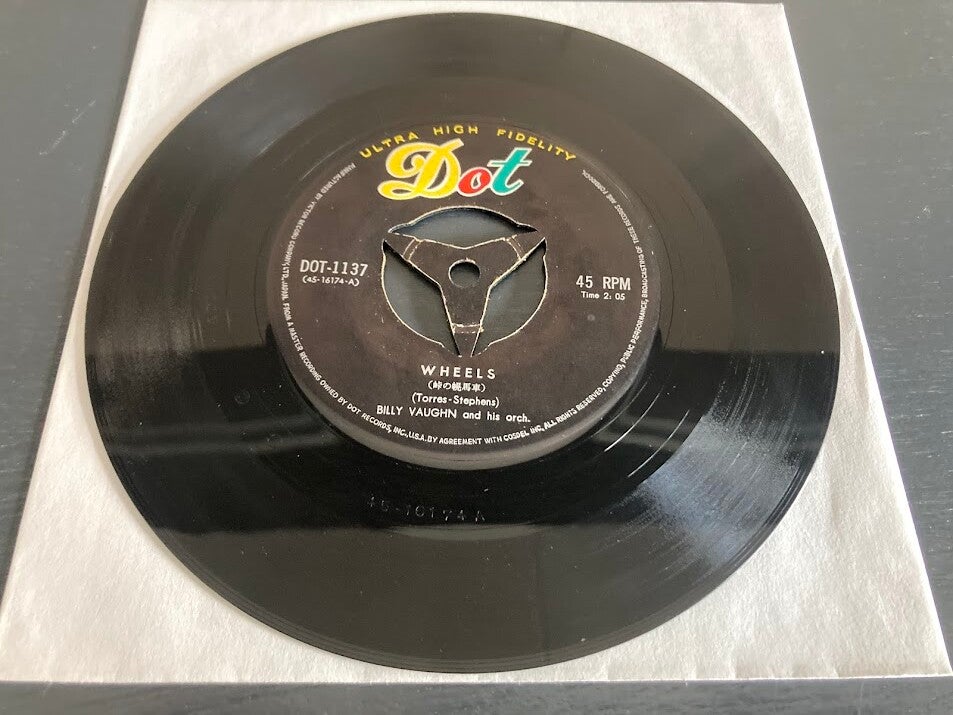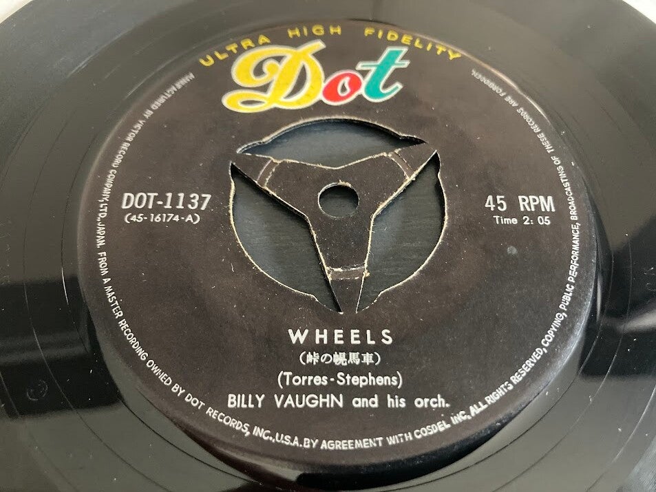De single “Wheels / Orange Blossom Special” van Billy Vaughn uit Japan. Het gaat hier om de originele (eerste) release van de Japanse single met originele insert, uitgebracht in 1960.
