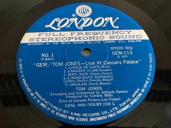 Het album “Live at Ceasars Palace” van Tom Jones uit Japan met OBI en insert, uitgebracht in 1973.