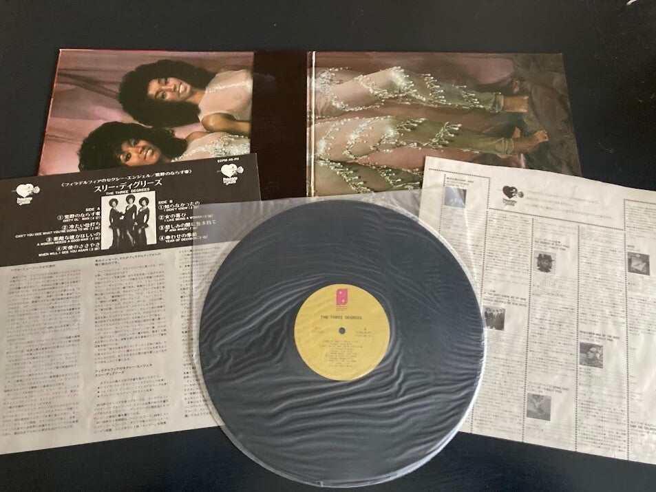 Het album “Three Degrees” van Three Degrees uit Japan met OBI, originele innersleeve en insert, uitgebracht in 1973.